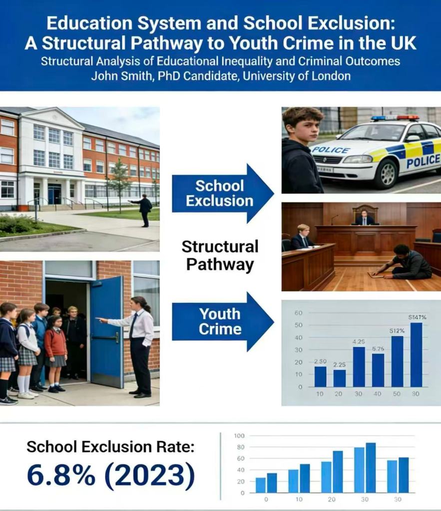 Youth crime in the UK is often explained through individual behaviour or family background. However, sociological and criminological research increasingly highlights the role of structural institutions, particularly the education system. One important issue is school exclusion, which includes both temporary suspensions and permanent expulsions from mainstream schools. While exclusion is intended to maintain discipline and protect the learning environment, evidence suggests it may also contribute to pathways into youth crime.